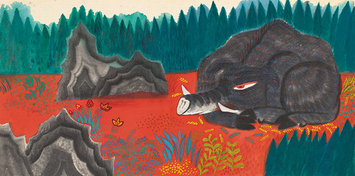 这则故事是文学作家刘海栖老师的作品,一则民间意味较浓的故事,作者文字有着明显个人韵味与节奏,很是诙谐幽默。绘本今年5月出版落地。好的文学作品让人觉得有意思,会激发创作欲。同时在消化的过程中,觉得故事在诙谐的语言下,有一定的当今社会寓意性。因此想突破自己原本的中国传统绘画风格,用一种具有现代意味的视觉语言去创作。