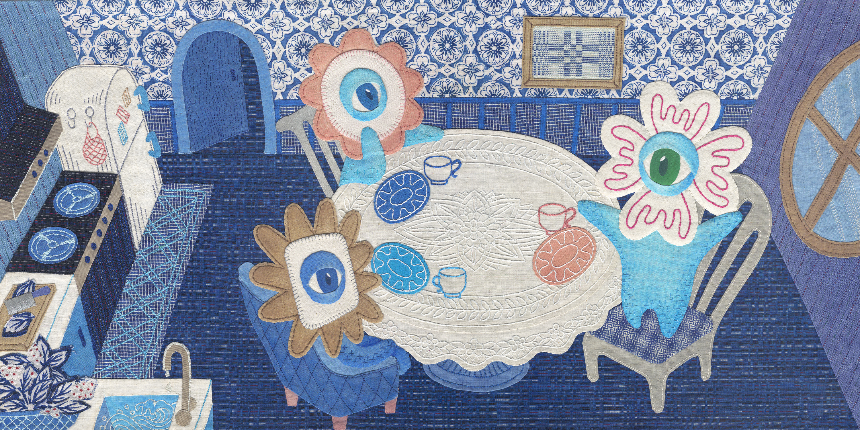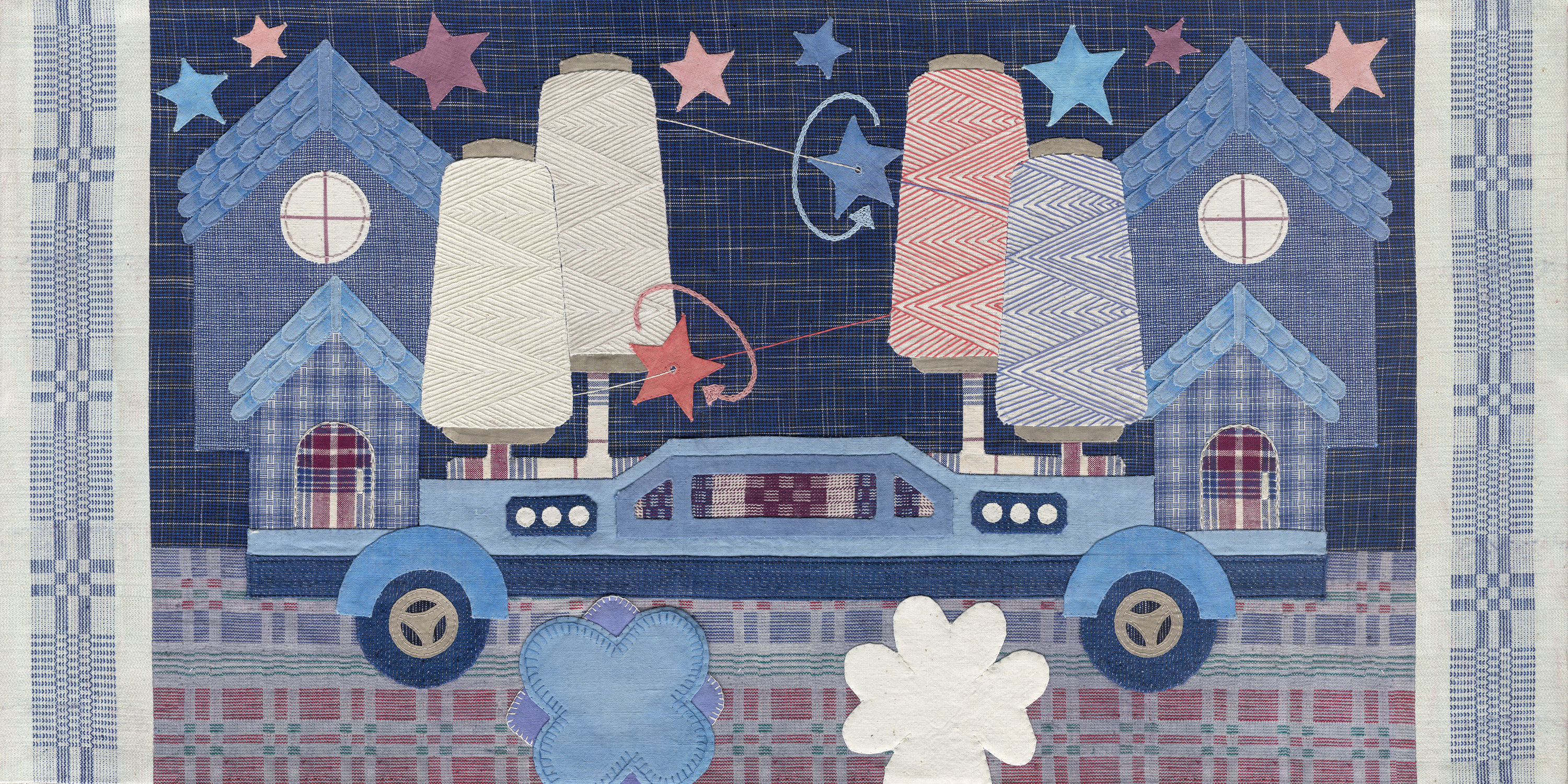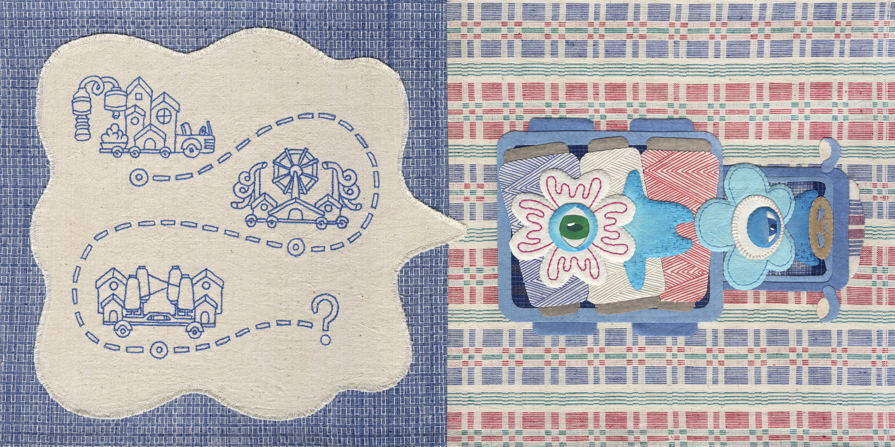 该作品出自以拼布、刺绣等非遗传统技法、结合20世纪40-60 年代手工上海土布创作的布艺绘本。通过哈娜从棉纺世界到森林世界的旅程,诠释 “境随心转” 哲学内核,以老面料手工创作呼应当代社会 “慢下来内省” 的人文诉求。