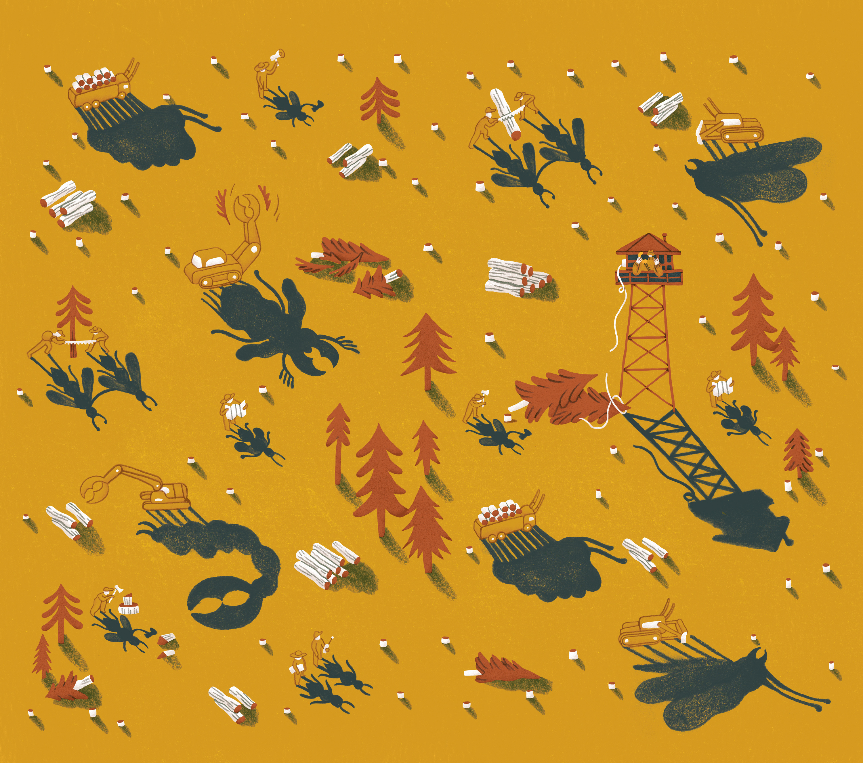 八月决定开始新的独居生活,投身森林的守护工作。在高耸的瞭望塔上,他俯瞰着广阔的林海,密切关注一切动向,一旦发现问题立即上报。周复一周,月复一月,四季更迭,岁月流转,一切都平静安宁,直到有一天,树木竟开始以惊人的速度消失。