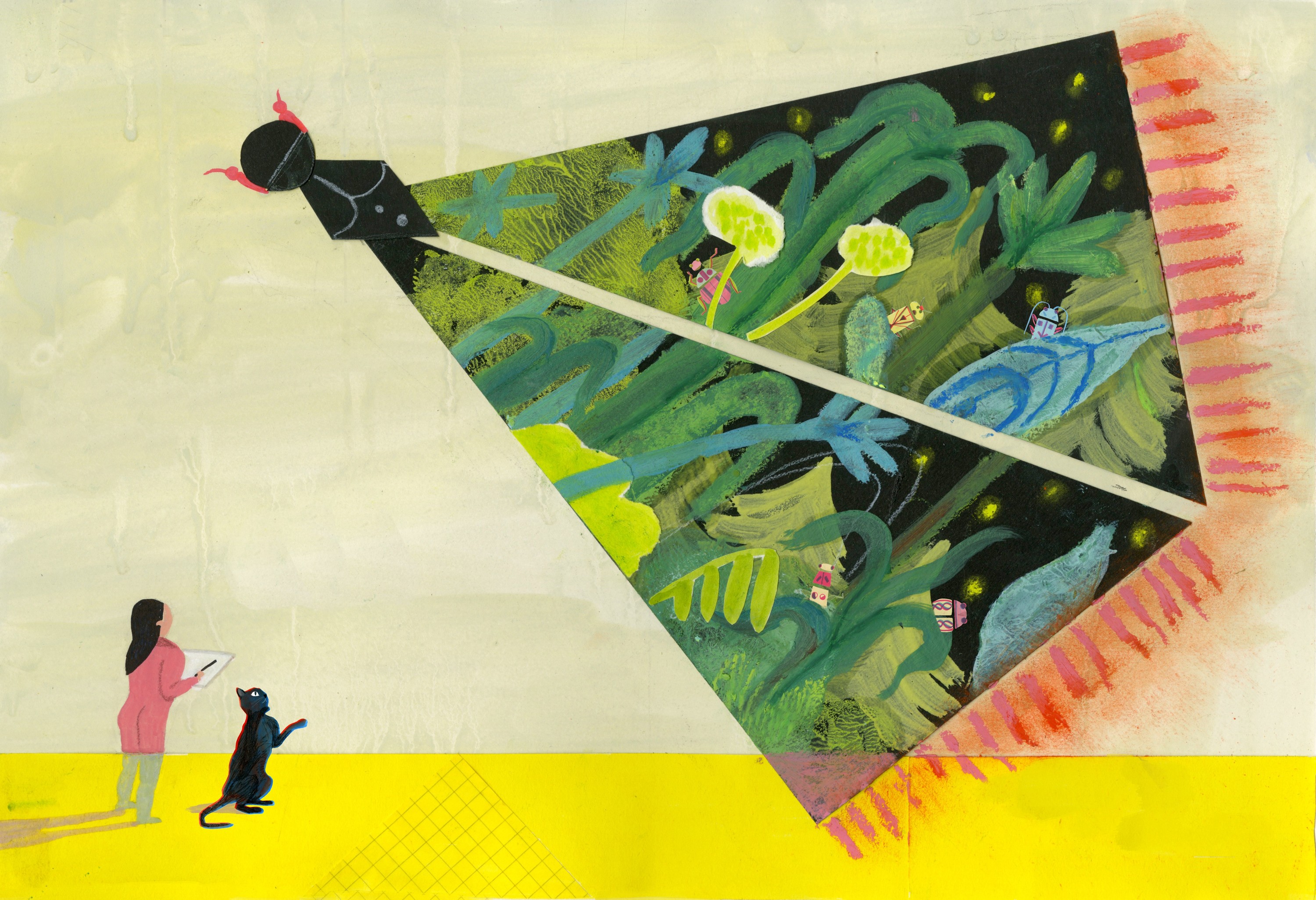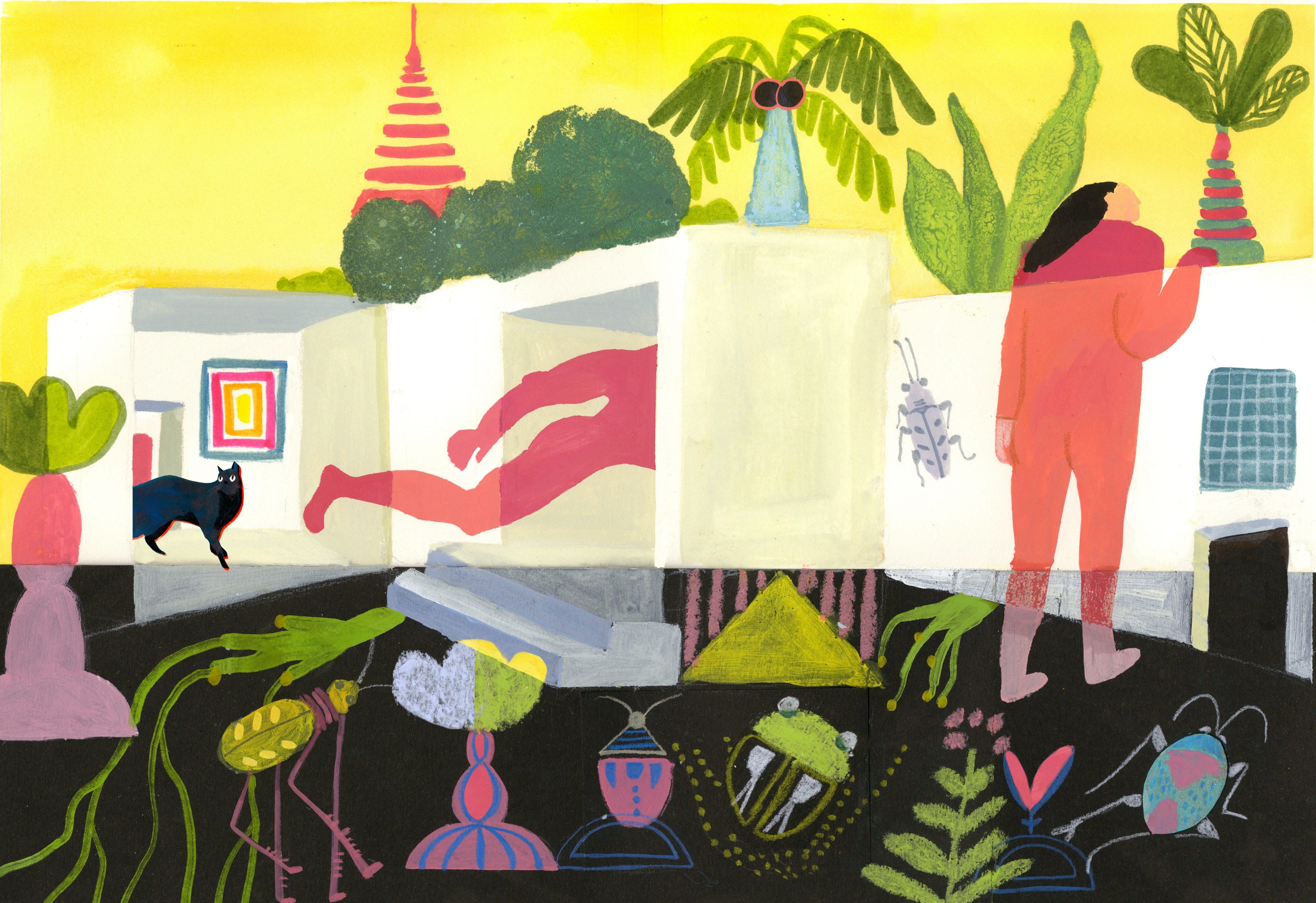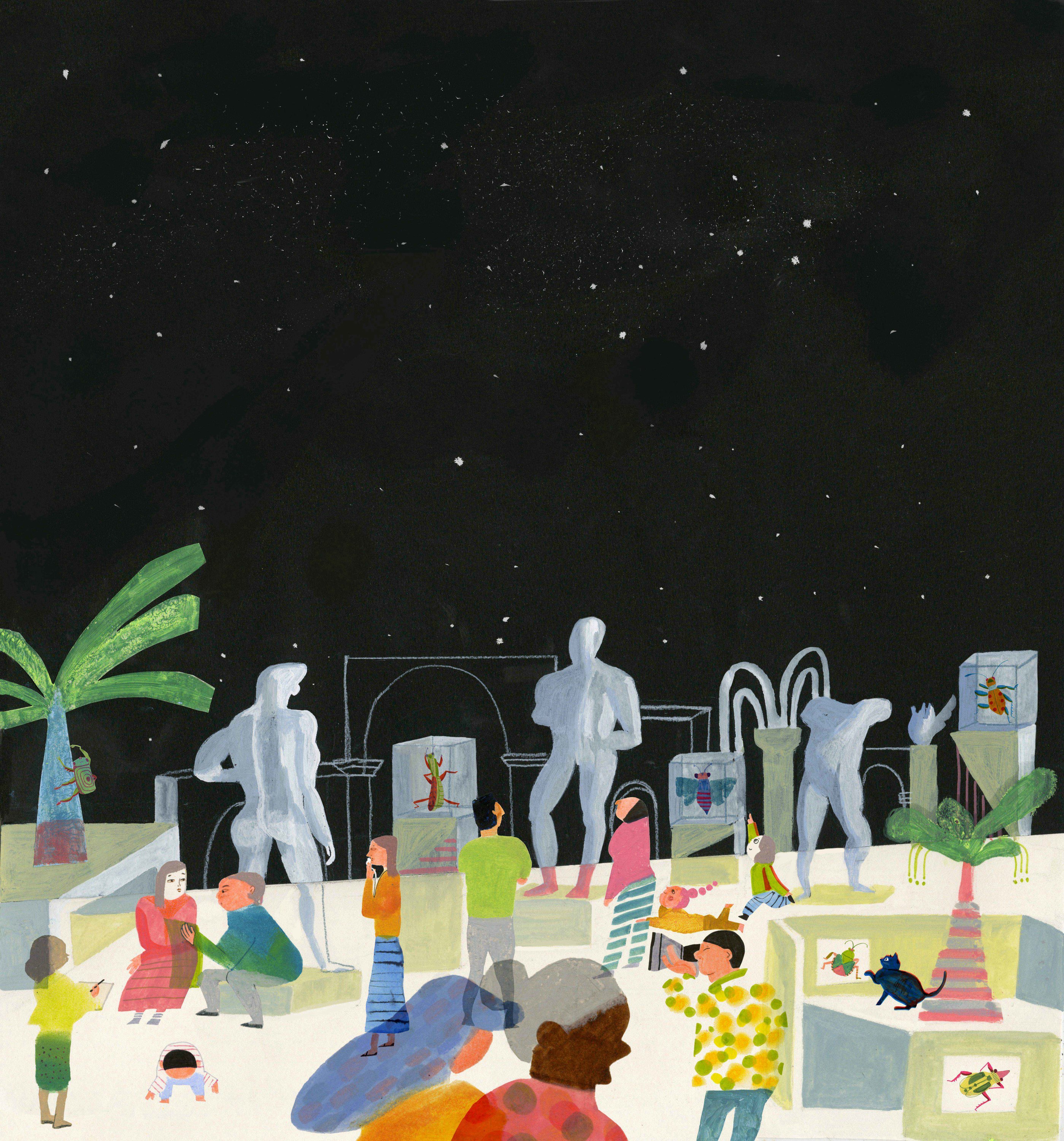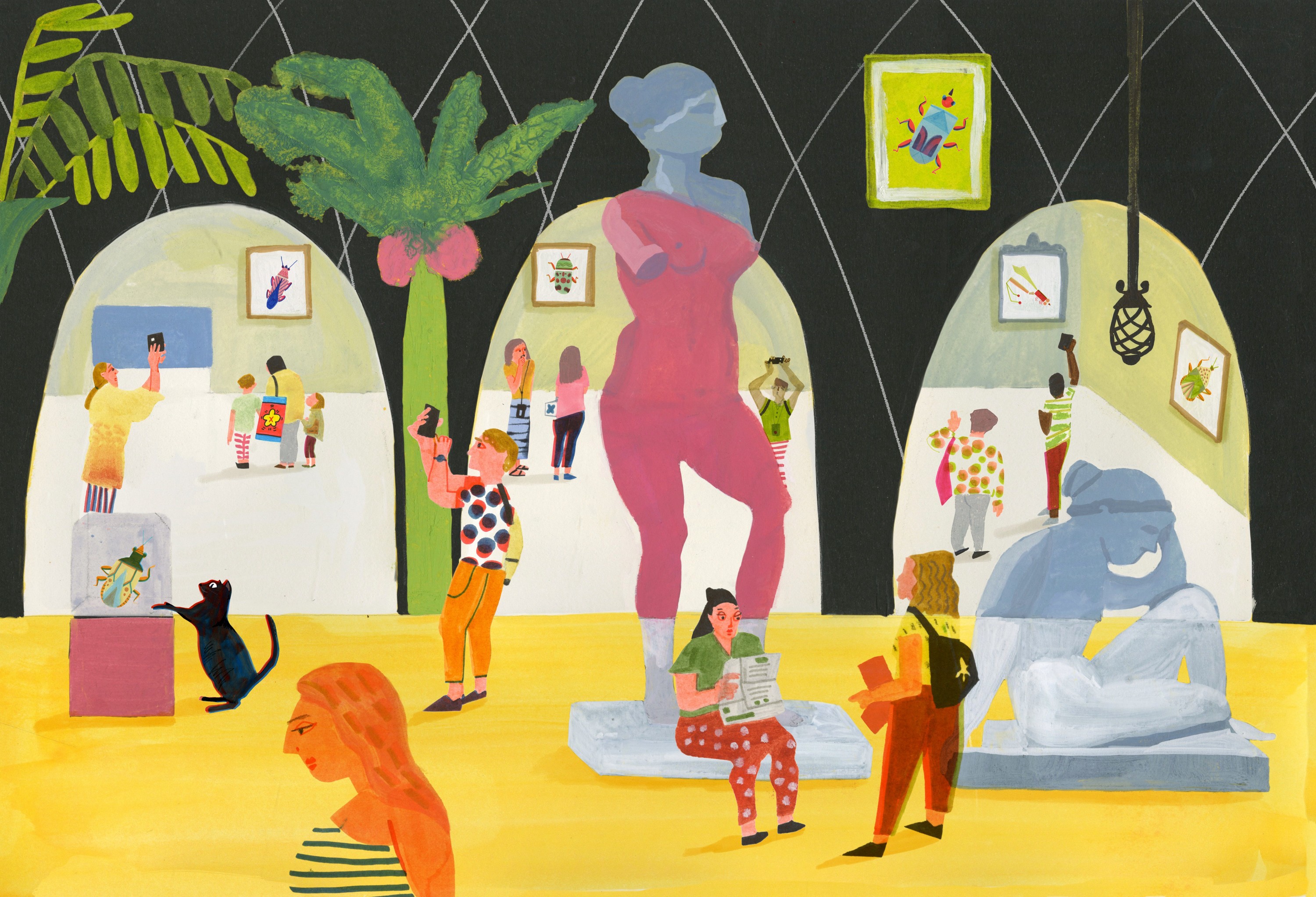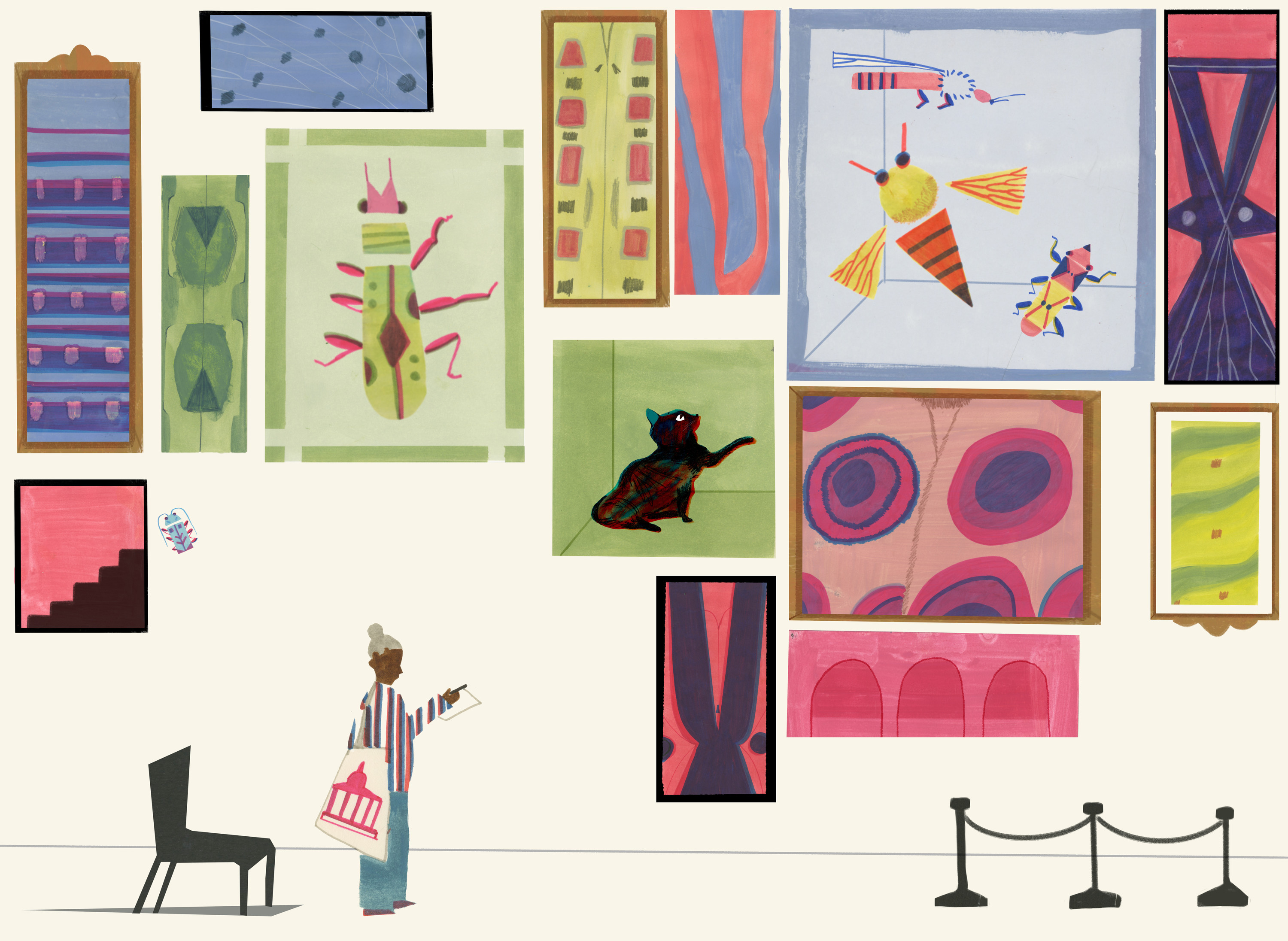 该组作品的灵感来源于伦敦自然历史博物馆和巴黎的博物馆. 这是博物馆的系列插图,但与普通博物馆不同的是,这是一个将昆虫与艺术相结合、充满幻想和探索欲的奇妙空间,鼓励读者跟着小猫寻找昆虫和艺术品,探索美的世界。
