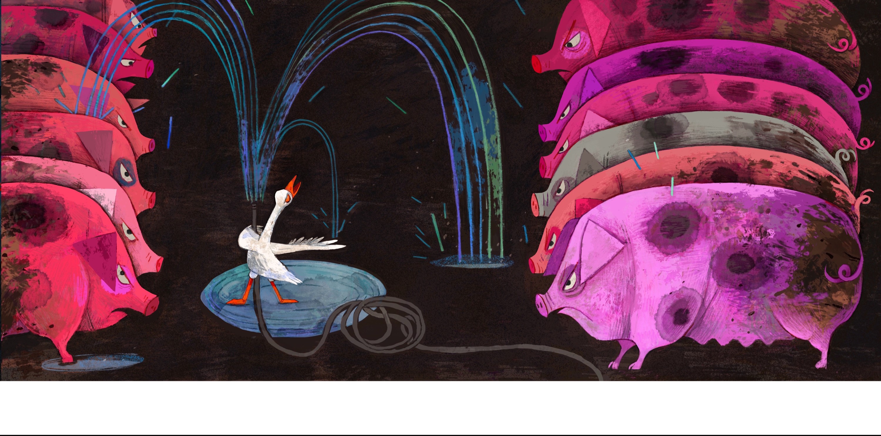这是一个关于农场里一只鹅的故事。这只鹅不仅不管好自己的事,反而总打扰其他动物,还误以为大家都在和自己开心地玩耍。其他动物再也无法忍受它的这种行为,最终纷纷离开农场,而鹅却完全不知道它们为什么全都走了。